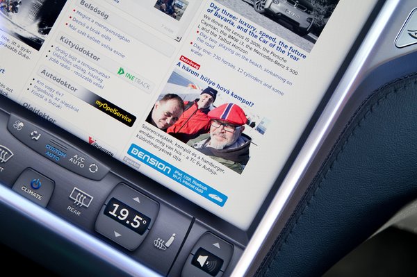 Egy ilyen autót használatba venni olyan, mint egy jó okostelefont, aminek nem cseszték el az operációs rendszerét és elgondolkoztak rajta, hogyan lesz használható. Kicsit zavaró ugyan, hogy a Teslának még a lámpáit is az érintőképernyőn kell felkattintani – volt az a hosszú perc, amikor Sipivel tétován turkáltunk a kapcsoló után –, de az egész rendszer elegáns, átgondolt. Azokban a bizonyos körökben, ahol már szavak nélkül is értik egymást, erre összebólogatnának: végre itt a méltó környezet egy rendes iPhone-használó számára.