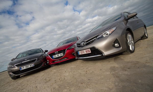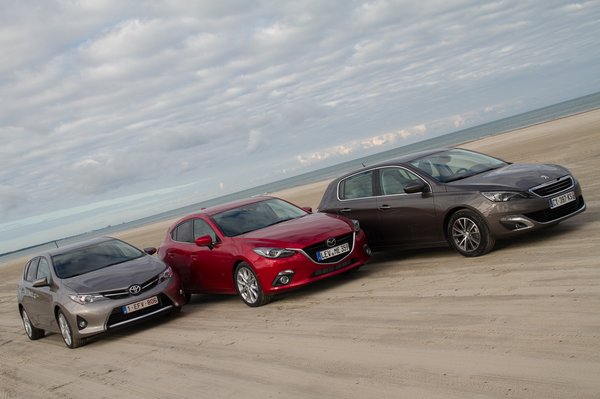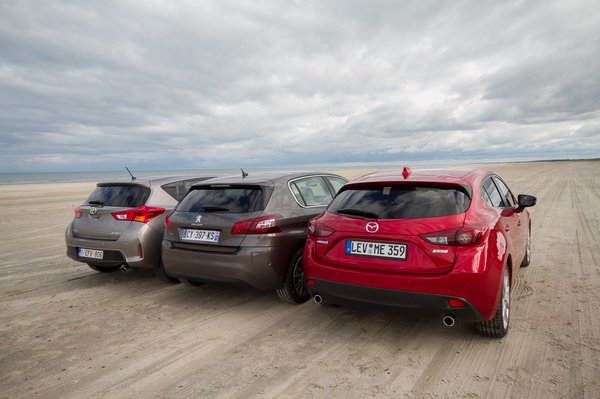 Mi a gyorsteszt után a Peugeot-Mazda-Toyota sorrendet tartjuk reálisnak, mert a francia a legmegnyerőbb és a legolcsóbb, a legjobb hajtáslánccal, csak, akármennyire is fáj, a hiányzó centik miatt a másik kettő használatóság szempontjából szempontjából akkor is megveri. Ha így vesszük, a Mazda egy előnyösebb kompromisszum (lesz egy kisebb dízellel). Az Auris cégautónak ideális, hisz a célnak megfelel, az alkalmazott meg nem fog a belső dizájn miatt reklamálni.