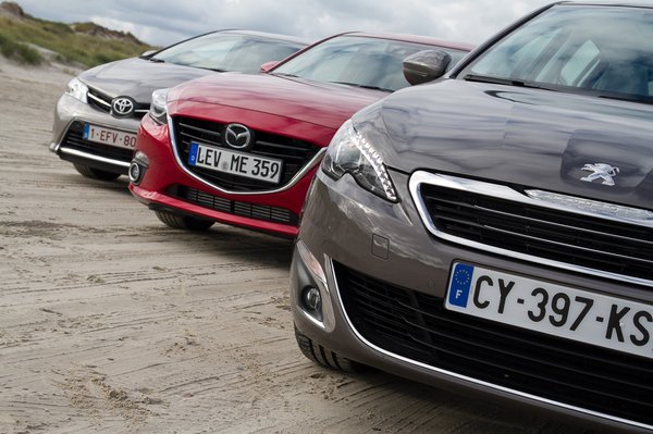 Vajon ez a három autó hogyan fog az európai piac három uralkodó modellje ellen helyt állni? Nehéz kérdés. Szemmel láthatóan nem is erre mentek rá, a 308-ast a hátsó tere, a Toyotát a belső kivitele a Mazdát meg szimplán a motorhiány fosztja meg attól, hogy nyerési esélyei lehessenek egy Golf-Astra-Focus összehasonlításban.