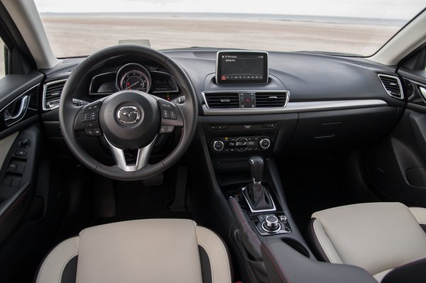 Az Aurisban kellemesebb a hátsó ülőhelyzet, de ez csak árnyalatnyi különbség. Viszont a Mazdában jó elöl ülni, hosszabb az ülőlap és oldalirányban is tart az ülés, a kormány kellemes közelségbe húzható, mindez csak a 308-asról mondható el, a Toyotáról nem. Kütyü-fronton a Mazda egy iDrive-szerű izével kezelhető, központi képernyős rendszert kínál, ami elég lassú. (A Toyota és a Peugeot szimpla érintőképernyőt ad). A Mazda csúcskivitelében még head-up display, azaz vetített kijelző is van, ez jópofa, de ritka extra lesz.