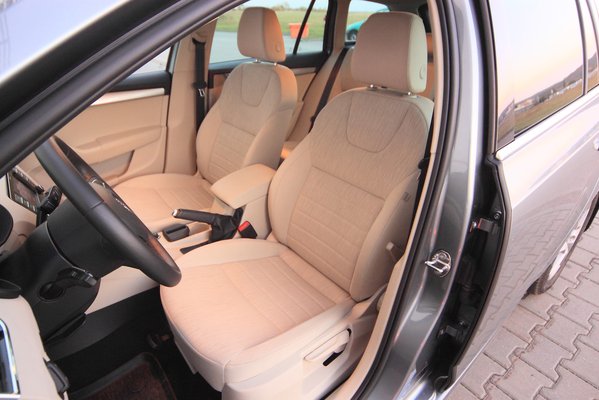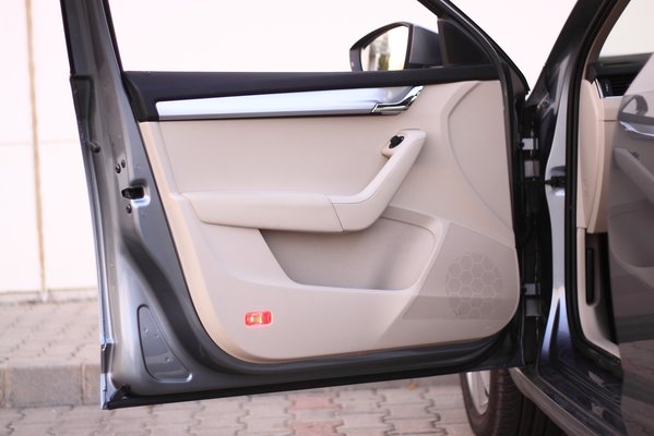 Muszáj megemlíteni az apró-cseprő hasznos kedvességeket az utastérben. Ezentúl nem muszáj az ablakon át szemetelni, mert az ajtózsebbe lehet rendelni egy apró kukát. Ahogy arra sem muszáj már magát emlékeztetnie a sofőrnek, hogy kiszállásnál ne hagyja a telefont az autóban (ami a szerzőnek komoly hobbija), mert az Octavia szól. Nem muszáj a négyküllős bőrkormányt sem megrendelni, de érdemes, mert mind fogásra, mind tapintásra jó. De muszáj volt azt a furcsán csavarodó, a beltérhez egyátalán nem illő, csíkos, ezüst betétet az ajtóra tenni? Muszáj ezzel elrontani korunk egyik legjobb fogású kilincsét?
