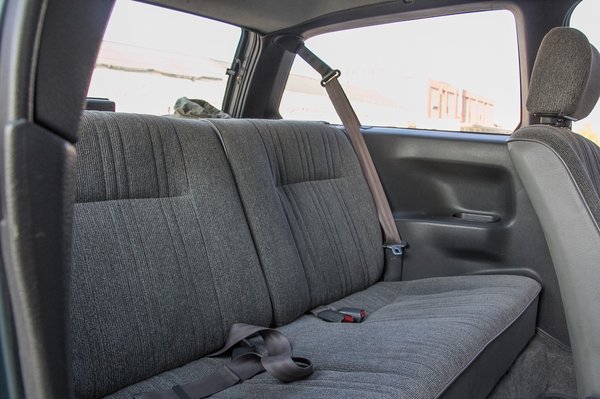 De aki nem szúrja ki a ködlámpa helyett megduplázott tolatólámpát és a keskeny rendszámgödröt a hátsó lökhárítóban, az is azonnal rádöbben, hogy valami nem stimmel, amikor kinyitja az ajtót, és szembesül az automata biztonsági övvel. Nem volt hosszú életű divat az ajtóoszlopba szerelt motoros mechanika, amely beszálláskor ránk húzza az átlós hevedert. Annyi a szépséghibája, hogy ha tényleg biztonságban szeretnénk utazni, még kézzel be kell csatolnunk a medenceövet - talán ezért készültek alig néhány évig ilyen autók az USA-ban. Aki képben van a korabeli japánokkal, azon fog még csodálkozni, hogy nem nyitható az utastérből se a tankajtó, se a csomagtérfedél, de itt nagyjából vége is a kuriózumok listájának.