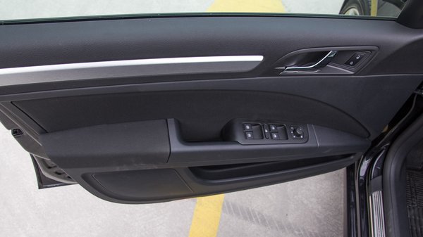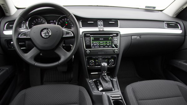 Bár akad néhány új kárpit-variáció is, csak a kormánykerék cseréje feltűnő, de ez is csak annyiban, hogy a krómdísz már nem a közepén, hanem a küllőkön csillog. Ez a cégautó-jellegű változat egyébként egyszínű sötétszürke belsőt kapott, minimális fémszínű dekorációval. Elsőre nyomasztónak tűnt, de hosszú távon inkább pihentetőnek találtam – sokkal rosszabb lett volna ugyanez valami csiricsáré, plasztik-hatásúra lakkozott fabetéttel, vagy zongoralakk-műanyaggal. A komor színvilág egyfajta menedzser-munkaeszköz jelleget kölcsönzött az autónak, ahogy a kényelmes, de egyszerű gyöngyvászon-jellegű anyaggal kárpitozott, manuálisan állítható ülések is. A képhez nagyszerűen passzol a középkonzol, és az érintőképernyős fedélzeti számítógép egyszerű logikája is. Nincs átláthatatlan gomberdő, mégis minden gyakran használt funkció egy-két gomb- vagy képernyőnyomással elérhető.