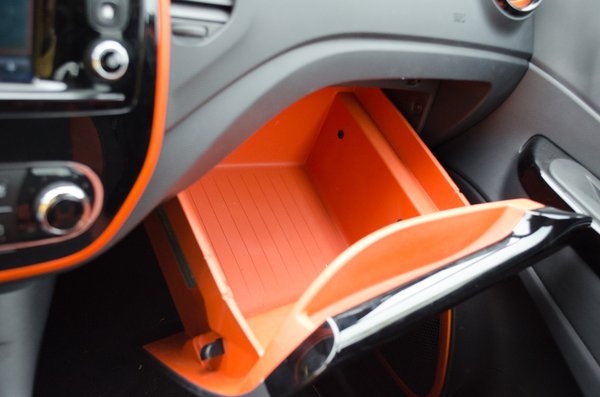 A Capturnek ráadásul belseje is van! Filléres ötletek mind funkcióban, mind formában, semmi olyan, ami megrengethetné az autóipart, csak ugye az ilyen apró hülyeségekért sok pénzt szoktak kérni. Nézzék csak meg az Opel Adam árlistáját. Itt a kétszínű üléshuzat, amiről az ülőfelület lecipzározható, és külön mosható. A böszme nagy kesztyűtartó (11 liter), ami nem zsanéros ajtóval nyílik, hanem kihúzható fiók, amibe belefér egy magasszárú sportcipő is. Az első támlák hátán nem zsebek vannak, hanem narancssárga gumimadzagok, hogy praktikus-e, arról vitatkozhatunk, én annak örülök, hogy végre valamilyen.