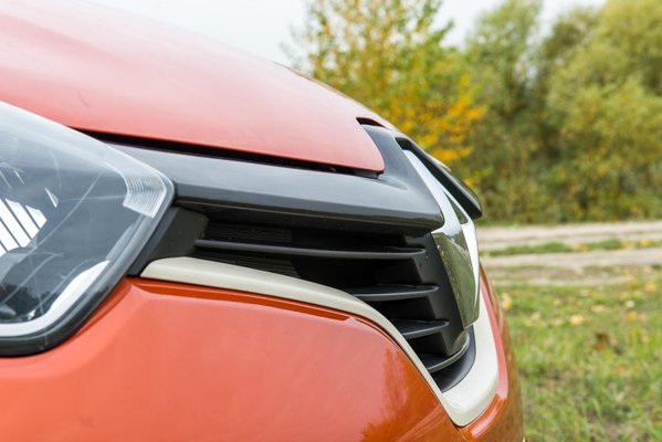 A harmadik fontos részletcsoport az anyaghasználat – én pedig már a fehér tetőt is ebbe a kategóriába sorolnám. A fehér, vagy más színű tető jellegzetesen prémium dolog, Miniknél van ilyen, meg a DS3-nál, a Captur viszont annyiért adja, mint mások az unalmas házi feladataikat. A fehér tető mellé kapunk még fehér tükörházakat, fehér dekorműanyagot a hűtőrács mellé és a ködlámpafészek köré, a hátsó típusjelzés alá. A küszöb is megér egy bővített mondatot: tompaszögű fekete háromszög egy dinamikus fehér betéttel – mintha egy nagyon tehetséges kezdő dizájner nagyon meg akarta volna mutatni, hogy a kötelező kis SUV-küszöbvédő műanyagozást úgy is meg lehet oldani, hogy szép legyen, és össze is jött neki.