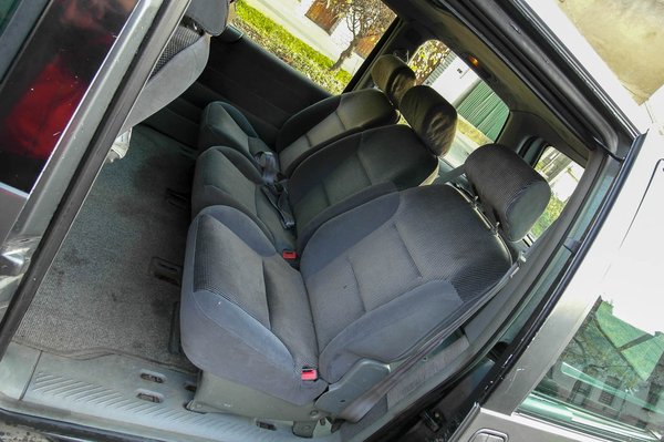 Azért tetszett meg, mert alig nagyobb helyen (csak szélesebb), mint egy 190-es Merci ad hét különálló ülést, mégpedig úgy, hogy a két első forgatható. Az összes többi karfás és kivehető, sőt, a rögzítési pontokon látszik, hogy a középső sor lábtere növelhető a hátsó rovására. Én úgy tervezem, hatülésesként fogom használni, kettő-kettő-kettő elrendezésben, egy ülést pedig otthon hagyok. Így marad majd középen hely a hosszabb dolgoknak, a gyerekek kartávolságon kívülre kerülnek, és beférünk a két nagyszülővel.