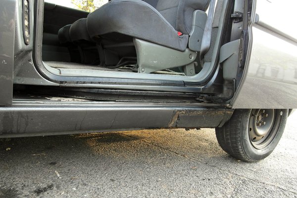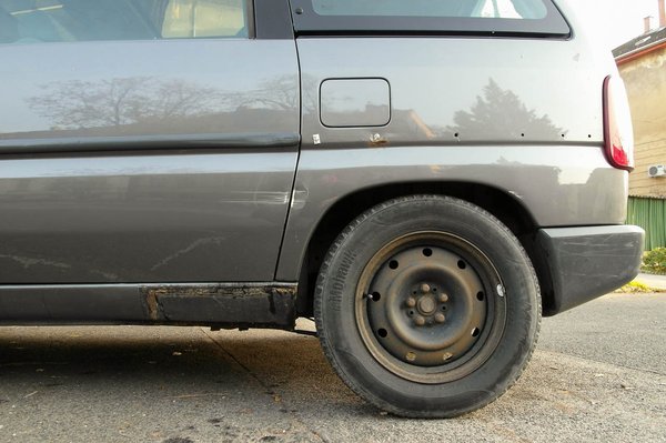 A fotókon szereplő autó külsőre egy borzalom. Évek óta arra tartják, hogy rozsdás vasakat szállítson bontókból, bontóba, olajos dolgokat innen-oda, és ha a családban valakinek elromlik valamije, hát beleülhessen, és kinyomhassa a szemét, vagy teleszórhassa kólásdobozzal. Szinte felüdülés, amikor padlógázzal, hat-hét személlyel elmehet egy tópartra, és vonóhorgára akasztva az utánfutón húzhatja a kenut, szörföt, vagy akármit. Ilyenkor nyolc liter alatt is elvan. Orvos mondta, hiszek neki. Nincs oldala, amin ne lenne szégyenteljes folt. Nincs küszöbe hegesztés nélkül. Nincs egy végig érő díszléce. Lehangoló.