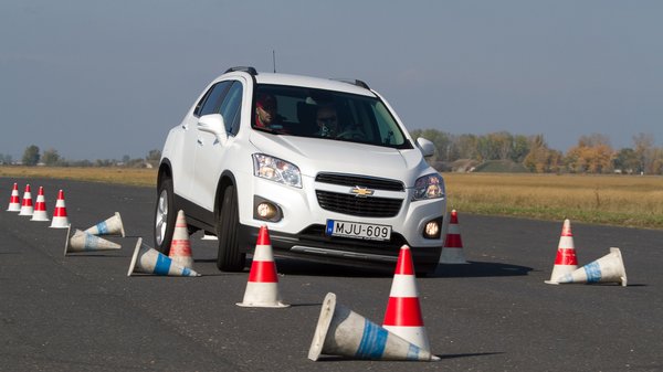 Mint az legutóbbi SUV-tesztünkön kiderült, azért van némi gond is vele. Hiába magas a hasa, ha az elején a szoknyát annyira közel húzták a földhöz, hogy hamarabb ér le, mint egy normál személyautóé. Így a koptató akár egy sima kapubeállónak is az áldozatává válhat, amit az ember pont nem várna egy ilyen szabású kocsitól. Hogy miért ilyen? Valószínűleg a légellenállást akarták mérsékelni (minél kevesebb levegőt engednek a kocsi alá, annál jobb), csak kicsit túlbuzogták. Kár, mert az elektronikus összkerékhajtás alapvetően jó, sőt, még az olyan szemét trükköket is kezeli, mint a tolatva elindulás emelkedőn. Emberi beavatkozást nem igényel, nincs fixre zárt üzemmódja sem. A Trax fékjei átlagosan jók, százról nekünk 34 méteren belül megállt, többszöri fékezéssel is.