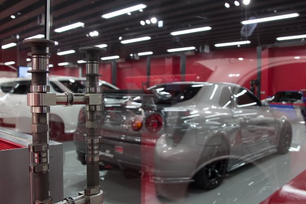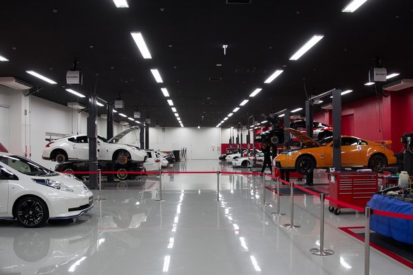 A yokohamai Nismo-üzem egy Kőbánya külsőhöz hasonló ipari negyedben van, talán egy zugfinomító és egy cérnagyár között, kívülről egy közönséges modern csarnok. De az eladótérbe belépve nem árt megkapaszkodni a szembejövő elsöprő benzingőz-áramlat miatt. A gyárhoz csatolt szalonban nem meglepő, hogy a legsikeresebb versenyautóikkal és az aktuális Nismo-kínálattal keltik a hangulatot, de a mosdóban a falra csavarozott vezérműtengely-nyersöntvények olyan szintű elmebajról árulkodnak, ami előtt illik meghajolni.