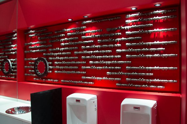 A szalont a műhelytől üvegfal választja el, és nehéz eldönteni, hol csillog jobban a padló. Az üvegajtó fogantyúja már egy megmunkált vezérműtengely - ami azon túl következik, az minden autónördnek meg kell, hogy dolgoztassa a nyálmirigyeit. A műtőbe illő pedantéria még feldolgozható, de amilyen autókon dolgoznak, attól már illik megszédülni.