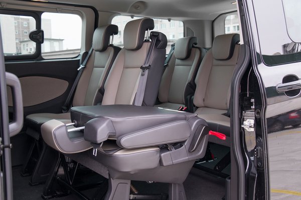 A Ford nem engedi ki ilyen könnyen a vásárlóerőt a kezei közül, a Tourneo Customhoz komoly személyautós extrák is vannak. A tesztpéldányban volt hátsó tolatókamera a visszapillantóban, első radar, kanyarkövető xenon fényszóró, és a már említett start-stop rendszer, sávelhagyás figyelmeztető, esőérzékelős ablaktörlő, állófűtés, igaz a klíma itt is manuális. Ez utóbbi pedig illenék, hogy digitális és automata legyen, bár akkor lehet, hogy konkurencia lenne házon belül a Galaxynak. Tempomat természetesen itt is van. A fedélzeti számítógép is komolyabb, színes kijelzőt kapunk, nem csak a gombtenger felett a középkonzolon, hanem a műszeregységek között is. A minőségérzeten a kézifékkar megfogása ront egy kicsit, ahhoz elfelejtettek hozzányúlni az áruszállító kivitel személyautósításánál.