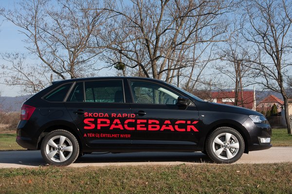 Na, most a Rapidból jelent meg a máshogy ötajtós Spaceback. Nem túl faksznis a formája, ettől kicsit kombiszerű, de tulajdonképpen annyit csináltak, hogy meredekebben csapták le a végét. Ha Toyota lenne, úgy hívnák, hogy hatchback, a másik Rapidot meg liftbacknek, amit talán emelkedő hátúnak kéne fordítani, de ez annyira hülyén hangzik, hogy inkább ne is erőltessük.