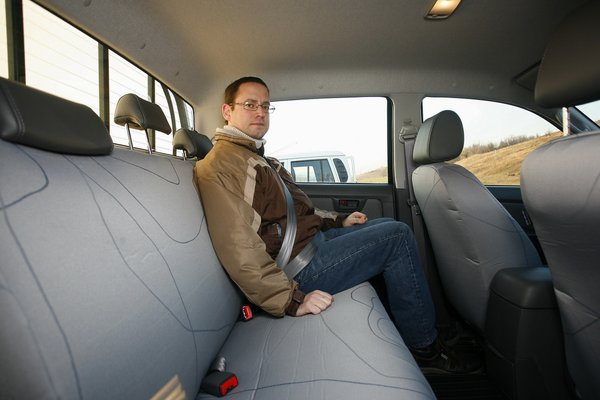 3085 milliméteres tengelytávja a Mahindra után (3040) a legrövidebb, de míg az indiai kisteher felépítménye óriási, a Hilux belsejében már nincs annyi hely. Nem mondjuk, hogy kicsi vagy kevés, mert ez nem igaz, de sajnos 185 centiméteres magasság felett a kormány már legfelső állásban is az ölünkben van, az ülést pedig nem lehet lejjebb engedni; felhúzott térdekkel ülünk, ez pedig már rövid távon is zavaró és kényelmetlen.