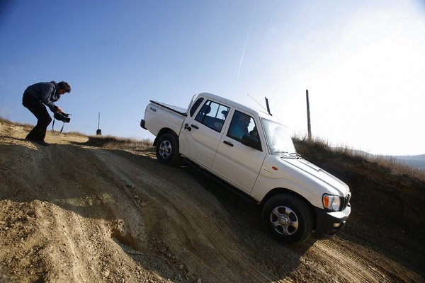 kocsi. Egy normál terepjárónál legalábbis biztos, hisz néha 10-12 centit rontanak a hasmagasságon. Ráadásul a ma divatos fellépők szép és drága tartozékok, ezért még jobban fáj, ha elhajlanak. Most viszont két pickupon is volt fellépő (a Mahindrán és az Isuzun), és nem volt velük semmi gond terepen. Úgy tűnik, hogy ezeknek a platós járműveknek nagyon kicsi a hátsó terepszögük, mivel elég nagy a hátsó túlnyúlásuk. Annyit egy fellépő nem tud rontani a középső (átlépő) terepszögön, hogy az rosszabb legyen a hátsónál. Magyarán, ha már a hasa felakad, akkor a hátulja már nagyon-nagyon fennakadna.