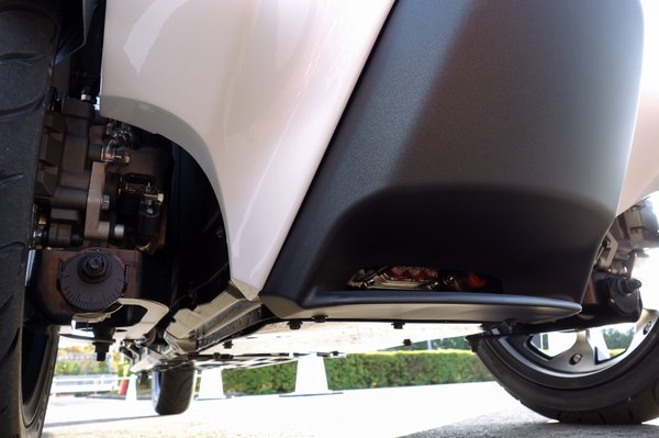 A futómű persze aktív, tehát elektronika dönti el, mekkorát dönt, milyen kormányelfordításra. Mert aki motorozik, tudja, hogy ugyanabban a kanyarban egész más szögben kell megbillenteni a gépet 30-nál, mint annak a négyszeresénél. Aki nem motorozik – például a leendő i-Road-vásárló – az esetleg nem érzi ezt, helyette dönt a gép.