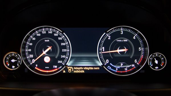 Ami viszont igazi visszalépés, az a TFT-kijelzős óracsoport. Szerintem ez már olcsóbb, mint a mutatós műszer, azért erőltetik oly sokan. De csúnyább is. Van, aki erényt kovácsol abból, hogy bármit meg lehet jeleníteni a képernyőn, de a BMW csak a mutatós műszer béna imitációjáig jutott. Ez nem egy esztétikai csoda, főleg a sport kijelző pirossal átitatott képe, amin csoportosan szörnyülködtünk, amikor nagyobb közönségnek mutattam. A mutatós műszerek közé tolt kijelző, ami az elődben is volt, éppen elég információt tudott megjeleníteni, mindenki szerette. Még szerencse, hogy ez csak egy ötvenezer forintos extra, aki nem ikszeli be, még megkapja a régi, mutatós órákat. Attól tartok, nem sokáig.