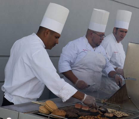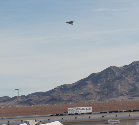 A teraszon hamburgerezve bőven van időnk, míg kezdődik a délutáni vezetés a 4-es kabriókkal, addig a közeli katonai reptér szórakoztat minket. Két-három percenként szállnak fel a gépek... anyám, az tényleg egy Raptor??? Raptor!!!! Áááááááá! És még egy! És még egy! Mi lesz itt, érettségi találkozó? Az öt éves speciel lehetne, mert az első lopakodó vadászgép első felszállása 24 éve, 1990-ben volt. Ez persze nem egyszerűen egy katonai repülőtér, hanem maga a Nellis Légitámaszpont, ahol az Egyesült Államok, és egyes jobban eleresztett szövetségesei kifejezetten a kötelékben végrehajtandó harcászati tevékenységet gyakorolják. Ezért is reppennek fel időnként MiG-ek és Szuhojok, ők alakítják a betolakodót, a BMW-s instruktor a múlt héten látott bőven Russian stuff-ot. Látunk még B2 lopakodót, rögtön kettőt is, F15-ösöket, F16-osokat, Boeing E3 Awacs, még egy, és még egy.