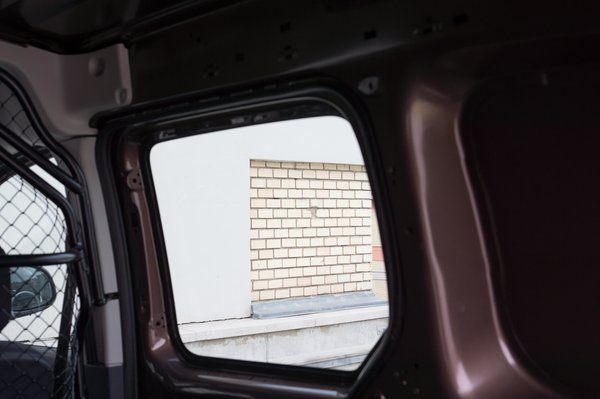 Elsőnek butaságnak gondoltam az üvegezést a jobb oldalon, de az első kikanyarodáskor rájön az ember, hogy csak így lát ki oldalra-hátra. Mondjuk egy sötétítés sokat dobott volna a biztonságérzeten, mert így gyakorlatilag át lehet látni a kocsin. Nem mellesleg a személyes dolgokat (pl egy hátizsák) se tudjuk elrejteni, hiszen a rács miatt még az ülés mögé is hiába tennénk. Tárolórekeszekben egyébként nem volt hiány.