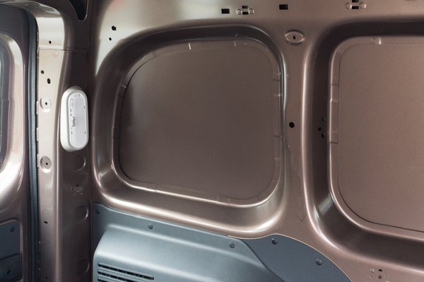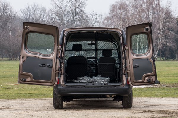 A kocsival szállítható hasznos teher 650 kg, de létezik megerősített változat is plusz 76 200 forintért, ekkor már 800 kilót szállíthatunk. Ezek elszabadulását hat darab, a padlón elhelyezett rögzítőfül hivatott megakadályozni, plusz ebben a kocsiban a feláras csúszásgátló gumipadló. A jobb oldali tolóajtó mellé kérhetünk bal oldalit is, de az 127 ezer forintunkba fáj, 101 600 forint levonásért pedig lehet oldalajtó nélkül.