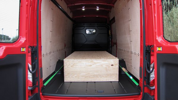 Ez a kivitel lesz valószínűleg a legnépszerűbb, mert a rövid, elsőkerekes Transit a legolcsóbb az összes közül. Igaz, az árlista legalján a 100 lovas motorral szerepel (nettó 5 849 000 Ft), ezt meg a 125 lóerős motor mozgatja. Harminc lóerő, amennyivel ez gyengébb, mint a legerősebb verzió, bizony még a legkisebb, legkönnyebb kasztniban is érződik. Ebben 400 kilónyi rakományt rögzítettek az oldalfalakra szerelt rögzítő fülekhez. A padló mindegyik Transiton sík, nincsenek rajta fülek, ráadásul egy tízcentis függőleges peremű, egybefüggő műanyag borítást kapnak, így a kisöprés, de még a slaggal kicsapatás is könnyen megy.