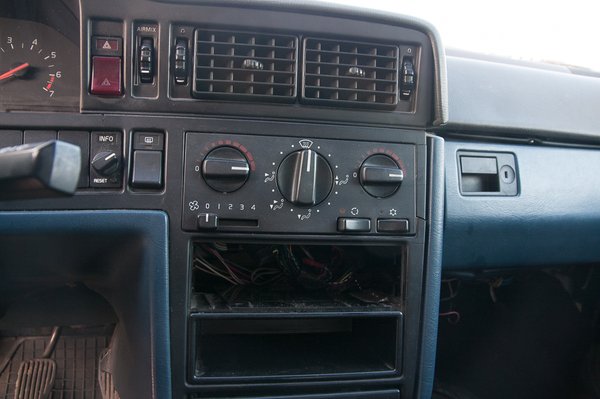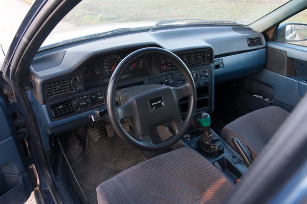 A sors kegyetlen. Az egykor csalogató kék-fekete utastérből a skandináv formák, a tolakodó szögletesség, a szokatlan logika szerint működő kapcsolók és repülőgépvészkijárat-kilincsek maradtak, de az egész perceken belül össze fog dőlni. Menet közben minden, de minden recseg-ropog a sokszor megbontott utastérben, pedig ha valami, hát egy nagy Volvo kasznija mindhalálig merev, masszív darab. A hátsó ajtók kívülről nem nyithatók, a jobb hátsó belülről sem. Még működik a fűtés, egy északi autóban ez a minimum. Még elektromosan mozog a jobb oldali tükör, és a mókás, tekerőkapcsolós fedélzeti számítógép is kiírja a fogyasztást, a megtehető kilométereket. Egy pálcika sem hiányzik a szegmenskijelzőn.