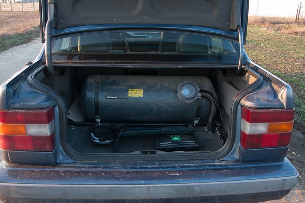 Becsületére legyen mondva, rozsda még így is alig volt rajta, egészen autószerűnek tűnt, de legerősebb – és egyben egyedüli – selling point-ként az érvényes nyomáspróbával rendelkező LPG-szettet tudta felhozni. Mondjuk számomra a napig gyomorforgató látni ekkora bojlert egy autó csomagtartójában, de valakinek tetszeni fog, hogy olcsón tankol.