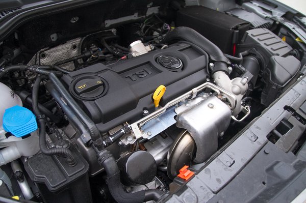 Nem mintha rossz lenne ez a TSI, de egy lineáris skálán szinte már közelebb van a TDI-hez, mint a mára kihalófélben lévő szívócső-befecskendezéses, szívó benzinesekhez. Már a hangja alapján is. Hidegen beindítva hörög, mint egy náthás rinocérosz, alacsony fordulaton meg úgy dübörög, hogy simán elhinném, ha azt mondanák, dízel. A hétgangos DSG váltó (850 ezer) pedig ezerötszázas fordulat környékén dünnyögteti a motort, amíg telik a fokozatokból. Biztos a légköbméterekben bővelkedő, egybefüggő utastér is rátesz egy lapáttal, de az állóhullám-szerű brummogást nem kellemes hallgatni.