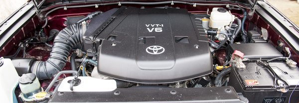 A japánoknál hagyományosan kisebb a motorválaszték, mint az európai konkurenseknél. Az FJ-t a Toyota annyira minimálra vette, hogy egyáltalán nincs is választék: egyetlen négyliteres, benzines V6-ossal kapható. A V6 VVT-i feliratot magunk is leolvashatjuk a motortakaró műanyaglemezről, ez egyébként a Toyota általános SUV-V6-osa, amit még olyan óriásokba is beraknak alapmotorként, mint a Tundra. Négy liter, hengerenkénti befecskendezés és négy szelep, 268 lóerő (@5200) és 380 Nm nyomaték 3700-as fordulaton, változó szívószelep-oldali vezérléssel. A Toyota gyári tuningrészlege, a TDR kínál hozzá Roots-kompresszort, de gyártottak is kész TRD-FJ Cruisereket, jó háromezret. Ez a V6-os viszont legalább van olyan kompakt, hogy elfér mellette a kettős keresztlengőkaros első futómű.