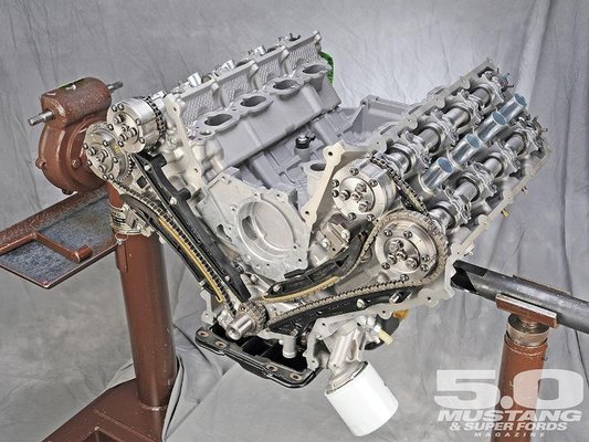 Ez az amerikai szemmel nem túl nagy – kis híján ötliteres (4951 köbcentis) – motor sem sorolható éppen az őskövületek közé. 2011-től komplett új motorcsaládot kapott a Mustang, akkor lett ez a GT (és a Boss 302) motorja. A cél az volt, hogy konkurense lehessen a GM-féle LS3-asnak és a Chrysler 6,4 literes HEMI-motorjának, ugyanakkor férjen el a helyén. Ezért aztán meg is kapott mindent.