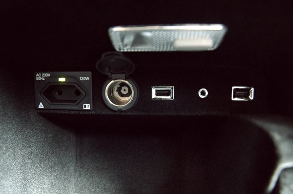 Útközben – ha megállunk, márpedig meg fogunk – azért jó, ha mindezt el lehet takarni a csomagtér-rolóval, hiszen a méregdrága technika felét sem tudjuk egyszerre magunkra akasztani. Igaz, púposan, de végül rá tudtuk húzni ötszemélyes konfigurációban a rolót. 645 literes a csomagtartó és most elvonatkoztatva attól, hogy mennyi a valóságban, de az biztos, hogy gigantikus, és köszönhetően az alacsony rakodóperemnek és elektromos mivoltának, nagyon könnyű pakolni. A csomagtér hossza a második üléssor háttámlájáig mérve több mint egy méter. És ez jó.