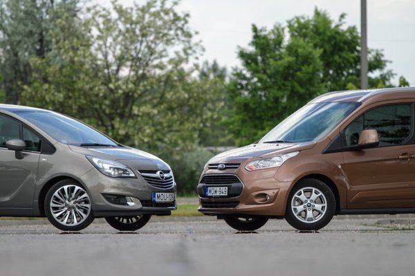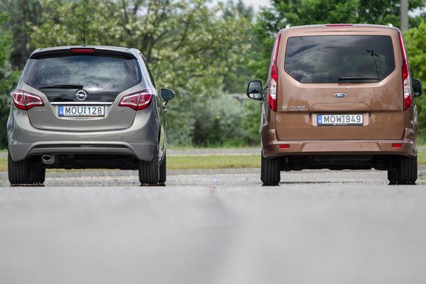 És az árak? A Merivát 5,5-5,7 milliós alapártól lehet megvenni, A Tourneo Connectet pedig 6,3-7,1 millió között a 115 lovas motorral. Hogy nincsenek egy árkategóriában? Elég nagyok a felszereltségbéli eltérések, az alaposan felextrázott Merivánk végül drágább volt, mint a Tourneo Titanium csúcskivitelben, és egy, igazán komoly extrát adott, amit a Ford nem: a félbőr üléseket. Azt sem árt tudni, hogy az 1,6 literes dízeleket kisebb teljesítménnyel is meg lehet kapni, az Opelnél 95 és 110 lóerős, a Fordnál 95 lóerős verziók választhatók még. Csak a korrektség kedvéért, egy 95 lovas Meriva az 5,3-5,5 milliós, a 40 centivel rövidebb, 95 lovas Ford pedig az 5,6-6,7 milliós ársávban játszik.