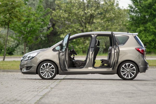 A Meriva azzal kavarta fel az állóvizet, hogy a hátsó ajtói nem a ma szokásos módon nyílnak, hanem hátrafelé. Sokan kifejtették már erről a véleményüket, nyilván van előnye és hátránya. Az Opelnek valójában az tesz jót, hogy az összes ajtaja közel derékszögben kitárható, a hátranyílós trükk inkább arról szól, hogy más legyen, mint a többiek. Bár tény, hogy a Merivát például jól lehet porszívózni a spéci ajtóival, ami kisgyerekek mellett nem hátrány. De semmivel sem jobban, mint egy tolóajtóst, mondjuk a Tourneo Connectet.