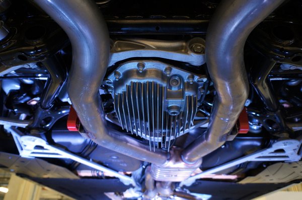 A hőterhelésre remek példa a 2x3 kipufogóleömlő szélső furata, amely nem kerek, hanem ovális. Ennyit tágul ugyanis huzamosan nagy terhelésen. Az új motor sokkal kevésbé terheli az első tengelyt, ez féktávon jótékonyan hat a stabilitásra, az autó hátulja iszonyatosan stabil marad, nyoma sincs masszív, ide-oda hullámzásnak, ami sok mai sportosnak mondott típusra jellemző. A hosszú motornak hosszú olajteknője van. Magnézium ötvözetből, mert az könnyű.