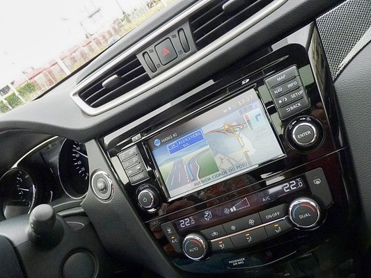 A Nissan egyik büszkesége a mindentudó infóközpont, ami a középre szerelt hétcolos monitoron át üzenget az embereknek. Mániám, hogy ezek a képernyők legyenek minél magasabban a műszerfalon, ne kerüljön ki a látóterünkből az előttünk futó út, ha a navigációs infókat figyeljük. Az X-Trailben is megcseréltem volna a középső szellőzőket a fejegységgel, de a helyzet korántsem tragikus. A szolgáltatások bővültek: a bluetooth, a navi ma már alap, a továbbfejlesztett készüléken pedig google-keresés, az otthoni számítógépen megszerkesztett útvonalak betöltése is működik. A navi magyarul is beszél, és szépen, késés vagy akadás nélkül dolgozik, bár egy nagy kereszteződés, és az onnan induló autópályaszakasz például nem volt még ráprogramozva, pedig nem úgy tűnt, minta tegnapelőtt adták volna át.