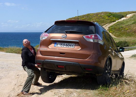 A hatfokozatú manuális váltó korrektül kapcsolgatható, ám a kis Juke váltója simán lekörözi: annyira precíz, hogy élvezet a váltókarral minden mozdulat. A kétkerékhajtású változat automata CVT váltóval is rendlehető, amelyet átprogramoztak, mert korábban sok vezetőt zavart a nyúlós karakterisztikája. Ezzel a váltóval alaposan megváltozik az X-Traillel utazás stílusa: Amerikában találjuk magunkat, a végtelen nyugalom és a végtelen utak birodalmában, ahol egyetlen D-be húzással át lehet krúzolni egyik óceántól a másikig. Nyugdíjas, jómódú fogorvosnak éreztem magam, pedig sem nyugdíjas, sem fogorvos, sem jómódú nem vagyok.