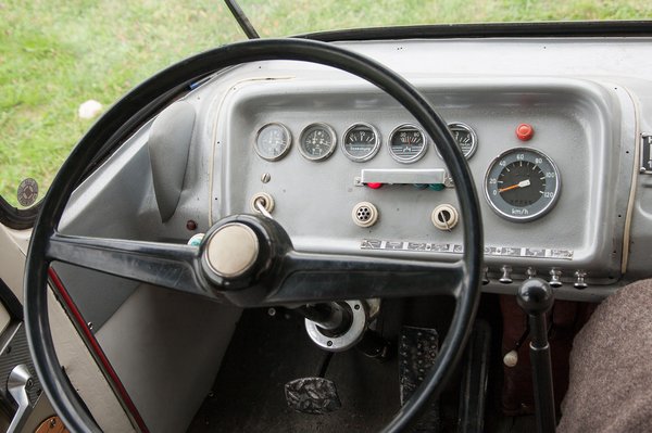 Most pedig, hogy készen van, el se hiszem, amit látok, s amikor a motor bepöccen, a hangtól úgy tódulnak elő a gyerekkori emlékeim, mint amikor leesik a slag az olcsó csatlakozóról full kertlocsolás közben. Ez a motor szinte beszél alapjáraton, húzatva pedig rendesen bőg, ahogy az ember egy veterán busztól el is várja. Füstje egy gramm nincs, gyönyörűen működik, az összes lámpa, visszajelző, minden szinte dalol.
