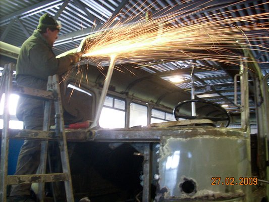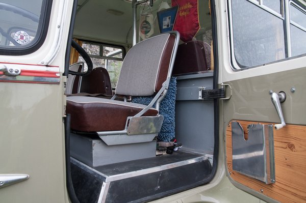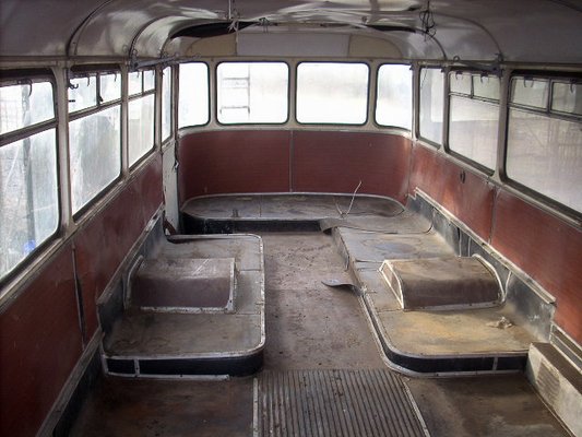 A tetőről minden kapaszkodó, cekkertartó, fogantyú hiányzott, de még a ládatér ajtajainak zsanérjai is töröttek voltak. Ezek egy részét egy 55-ös Ikarus-roncsból sikerült pótolni, a javát viszont le kellett öntetni. Az ülések kárpitozásának ellentételezésébe (tömés, műbőr, kéderek, kárpitos munka) pedig belement egy teljesen ép, buldogfülkés Csepel teherautó. Az se két fillért ér.