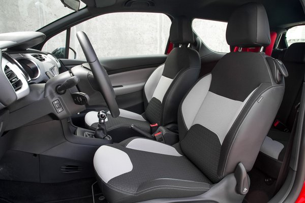 Hogy mitől prémiumabb egy átlagos kisautónál? Szépek a műszerei, a műszerfal anyaga kellemes tapintású, nem rideg, és könnyen karcosodó, mint egy alap, szomorkás C3-asban. Kifejezetten kényelmesek és jó méretűek az első ülései, beszállás után visszamennek oda, ahová be voltak állítva, fekete a tetőkárpit, mint egy M-es BMW-ben, vannak színek a szerelvényfalon. Soroljam még?