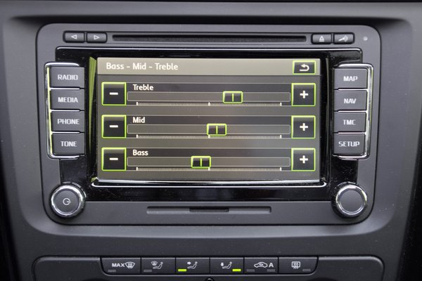 Először is: a kormány nem állt egyenesen. Jó pár fokkal balra állva demonstrált egy kiadós futómű-beállítás mellett. A visszapillantó tükrök elektromos állítása hol működött, hol nem. Ha igen, akkor is öt esetből háromszor olyan lassan, mintha az elektronok előtte körbefutnának az egyenlítő mentén. A 481 330 forintos felárért adott Columbus navi/multimédia rendszer pedig egyenesen gyűlöletesen lassan csinált bármit is. Sem a Golf, sem az Octavia esetében soha semmi bajom nem volt ezzel a kezelőfelülettel, az azonban, hogy stopperrel mérve kerek hét másodpercre van szüksége ahhoz, hogy egyáltalán bekapcsoljon, majd újabb évezred eltelik, miközben CD-ről rádiócsatornára vált, az már bosszantó, csaknem félmillióért pláne.