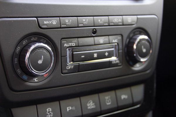 Na mindegy, legalább jól ülünk, könnyű megtalálni a kényelmes üléspozíciót és a Škoda valahogy megoldotta, hogy a felhúzott kézifékkar ne akadjon el a könyöklőben. A bőrkárpit szép ugyan, a memóriás vezetőülés kényelmes, de pillanatok alatt irgalmatlanul felmelegszik a beltér, azért az automata klímát szinte folyamatosan járatni kell, amit nem mindenki visel el köhögés nélkül. Például én sem, ezért inkább a kereszthuzatra szavaztam, dugóban pedig nyomtam a hideget, ha muszáj volt.