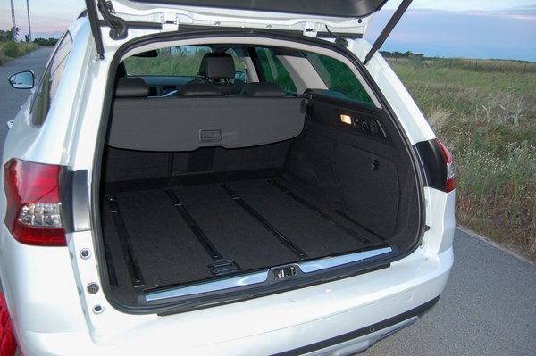 Hátul is nagy a hely és nagy az ülőfelület, de az első ülések kényelmét nem közelíti meg. A kombi rész miatt nem szűkülnek az ablakok, úgyhogy hátul is kellemes utazni. A csomagtérbe (505-1462 l) egy szerényebb élet összes cucca beleférne, biztos vagyok benne, hogy az élmezőnyben van. Ráadásul könnyen is pakolható, hiszen egy gombnyomással 6 centit leengedhető a hátsó futómű, a gomb természetesen a csomagtartóban van. Az ajtó becsukása után visszaemel, hogy ne maradjon seggre ülve az autónk.
