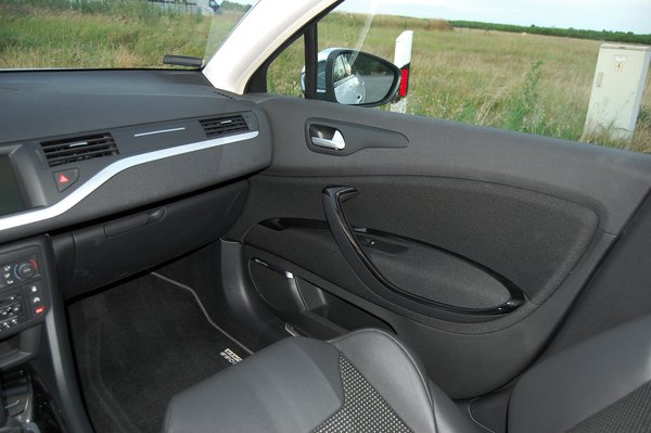 Sajnos az autón látszik, hogy nem új modell már. Nem a technikán, mert a futómű és motor valóban pompás, hanem az ergonómián. A multimédiás egység, az érintőképernyő hiánya, az ülésfűtés kapcsolói az ülés majdnem láthatatlan helyén – mind olyan dolgok, amiket 2014-ben már kisebb kategóriában sem engednek meg a gyártók. Az extralistából is hiányzik pár fontos biztonsági berendezés, bár van sávelhagyás-figyelmeztető, de holttérfigyelő például nem rendelhető. Az általános minősége, a beltér anyagai még megállnák a helyüket, a köztudatban élő franciás pontatlanság sehol nem fedezhető fel. Jól összerakott autó ez, nincs zörgés, nyikorgás.