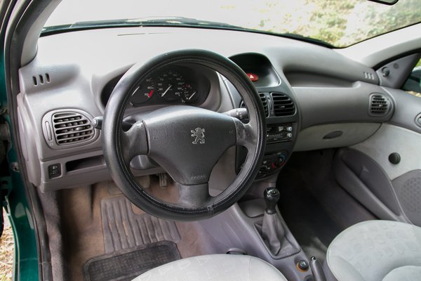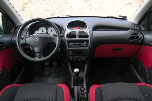 A mattuló fényszóróból arra lehet következtetni, hogy élete nagyobbik részét szabad ég alatt töltötte az ezeregyes ötajtós, és mintha a hátsó lámpákat is polírozták volna már. A kicsit fáradt, karcos, de azért egyben levő külsőnél azonban sokkal lehangolóbb a beltér. A szivacsosra kopott kormányra húzott védő is kopik már, a kárpitok kinyúltak, foltosak, karcosak – autókozmetikus a talpán, aki élhetőt varázsol ebből a leélt kabinból. A padlókárpit anyagába is beivódott már az az agyagos, sárgás por, ami az autó minden falcába beleszáradt. Néhány jelentéktelen műanyag elem is elhagyta magát: a B oszlop borítása, a külső vízvető vége, a fejtámla díszkarikája; ezeken mondjuk nem kell csodálkozni, a 206-os újkorában is tele volt ilyen silányságokkal.