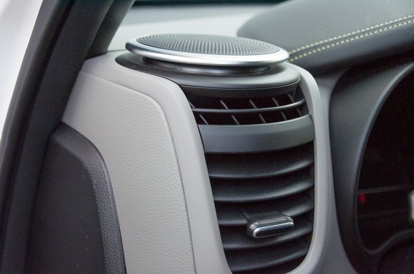 Mi ez? Hű, nézd a jópofa, álló hangszórókat! Ott a mélynyomó középen... és mi van?! Bőrrel varrott árnyékoló a műszereken? Puha, süppedős műszerfal? Központi érintőképernyős kijelző? Sem villogó hangszóró, sem borzalmas, piros plasztik? Multikormány tempomattal, táblafelismerő... mintha egy másik bolygón lennénk az elődhöz képest. Ez az EX felszereltségi szint megspékelve pár dologgal szinte extra zavart idéz az erőben. A beltér jó és szép, egyáltalán nem tűnik olcsónak, valószínűleg nem is az. Ráadásul nem öncélú és giccsesen, szájbarágósan kaotikus, mint egy Miniben, hanem egyként értelmezhető, sallangmentes és jól használható.
