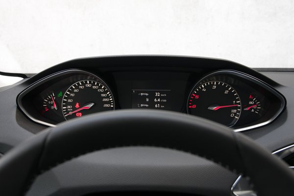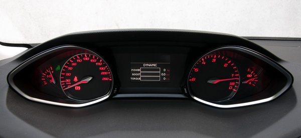 A 208-asnál még kicsit fáztam tőle, itt a 308-asban már jobb ez a konfiguráció. De most csavartak rajta még egyet: a fordulatszámmérő az óramutató járásával ellentétes irányba mozog, ahogy nő a fordulat. Néhányszor döbbenten kaptam oda a szememet gyorsítás közben, hogy mi a fene van. A skála talán azért ilyen, hogy a volán a lehető legkevesebbet takarja ki belőle, de szerintem így is ellentétes az ember által megszokott logikával. Bár ne higgyük, hogy a kormányon keresztül is mindig lehet látni az órákat, ott van az utóbbi idők Alfa-termése, de még jó pár típus esetében a kormányív kitakar többet-kevesebbet.