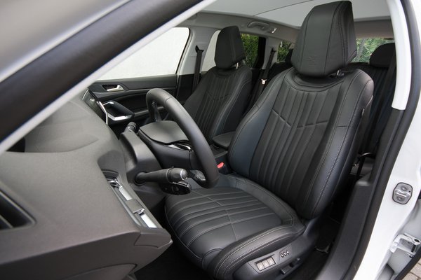 Elég nyilvánvaló, hogy nem ez lesz a leggyakoribb kivitel, még ezzel a motorral sem. Kétségkívül gyönyörűek a bőrrel az ülések, pláne, hogy a fejtámaszokon még a Peugeot-oroszlánt is beléjük préselték, viszont a szokásosnál is csúszósabb a bőr. Viszont a masszázs-funkció zseniális hosszú utakon, ki gondolná erről az autóról, hogy egy álcázott vezérigazgató-kivitel?