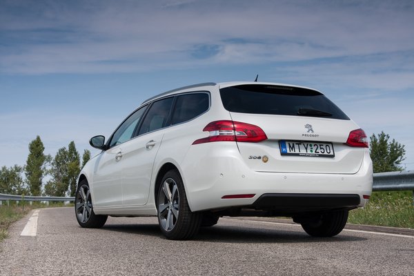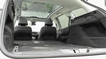 Különösebben az sem fájt, hogy a Peugeot elhagyta a csomagtartóból kihajtogatható két pótülést, amit a 307 SW és az előző 308 SW esetében elérhető volt. Ez ugyan jópofa ötlet, de sokkal kevesebben igénylik, mint azt, hogy rendes méretű tér legyen a csomagtartóban. Ezt sikerült megoldani, sőt, bőséges hely van a hátsó üléseken is. Ne higgyék, hogy ez evidens, a Focus kombinál például nem az. Ami a számokat illeti, 556 liter a padló fölött, és ha nincs pótkerék (továbbá az ember megállja, hogy ne vegyen mélynyomós Denon hifit 145 ezerért), akkor alatta 54 liternyi hely jut kisebb dolgoknak egy nem túl szép, keményhab tárolóban.