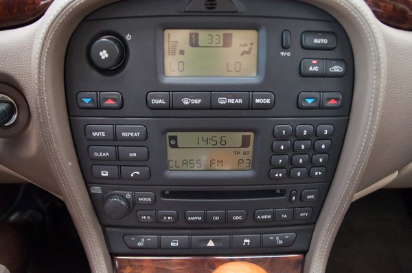 Kicsit avíttas már manapság a monokróm kijelző és a temérdek nyomógomb, de nem kell hozzá nagyon hunyorítani, hogy ennek ellenére elegánsnak lássuk, az apró részletek mentik meg az összképet. Mint például a krómozott szivargyújtó vagy az finom keretes óracsoport, és persze a hosszú géptető, a vaskos szőnyeg, a finom gurulás, amit csak itt-ott zavar meg egy-egy nagyobb úthiba, amit az S-Type felvesz, de éppen csak hogy megkopogtassa vele a hátunkat, mintegy jelezve, hogy figyel.