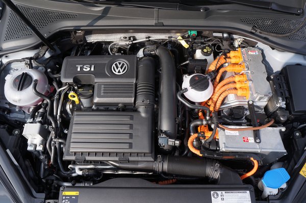 Legalább egy tucat különböző Volkswagen kapható az ezernégyszáz köbcentis, benzines turbómotorral, de az ekkora méretű hibridek benzinmotorjai közül ez a legerősebb. Dupla kuplungos, hatfokozatú DSG váltó kapcsolódik hozzá, melyet összeépítettek a 102 lóerős villanymotorral és a két motor néha minden erejét összeadva hajtja a kívülről közönséges Golfnak tűnő autót. A váltó a hagyományos kézi váltók szerkezeti elemeiből épül fel, de alapesetben magától kapcsolja a fokozatokat. Nagyon gyors és észrevétlen, nem dobja meg a fogyasztást és nem romlik tőle az autó gyorsulása, hiszen előre bekészíti a következő sebességet amikor gyorsítunk, vagy lassítunk, így egy DSG-s Golf nagyon finoman megy.