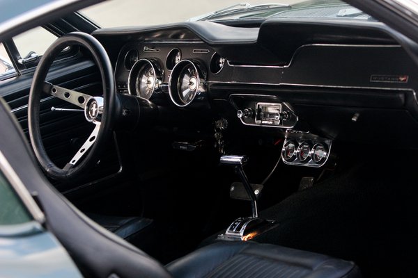 Az emblémát nem slendriánságból nem pótolta a tulajdonos. Az eredeti Mustang katalógusban nem szereplő kerekek sem puszta majomszeretetből kerültek a kocsi alá. És akkor ott van még a Highland Green Metallic fényezés – az ember csak dörzsöli a szemét, csak nem Steve McQueen, alias Frank Bullitt hadnagy autóját látja?